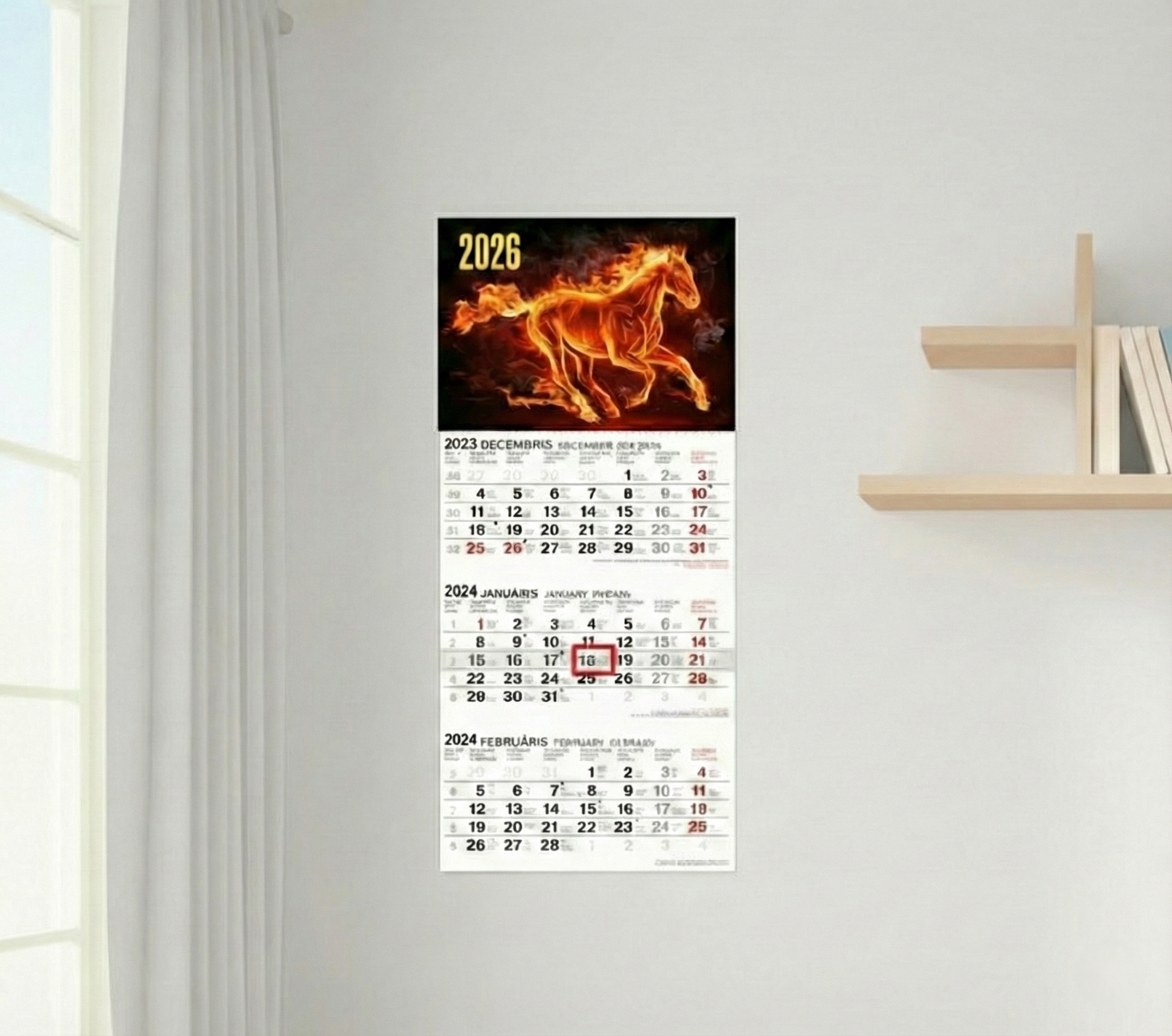 Sienas kalendārs prezentē trīs mēnešus vienlaikus.